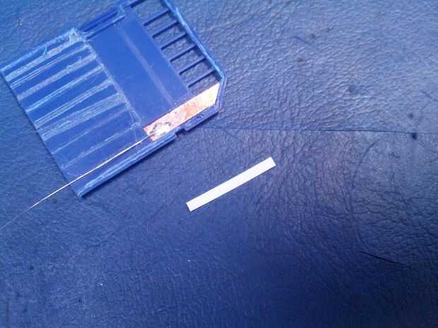 Corté a lo largo de la mitad inferior de la caja de la SD. Usaré este espacio para la soldadura en el cable de cinta.