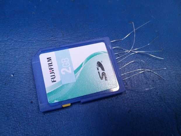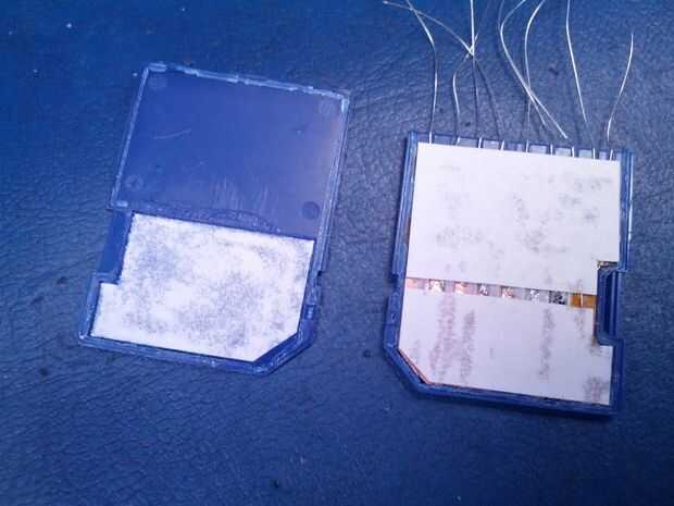 La tarjeta SD se presiona juntos durante unos 5 minutos mientras el pegamento fija.