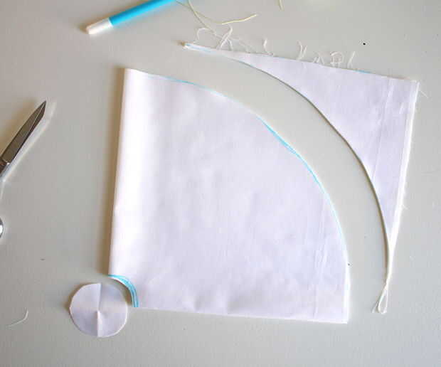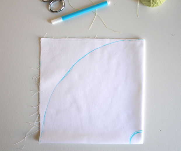 Ahora dibujas una curva a lo largo de las esquinas exteriores - las asperezas. Creo que es más fácil tomar un trozo de cadena que es el ancho del cuadrado doblado y perno hasta el borde mismo de la esquina interior. Mover la cadena de una esquina a la otra, la curva de la marca con un lápiz como vas.