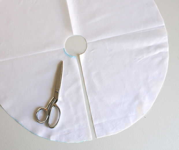 Desplegar la falda y elegir una de las líneas de pliegue. Corte 1/4 de pulgada en cada lado de la línea, va desde el borde exterior hasta el borde interior. (Ver fotos 3 y 4 para obtener más información)