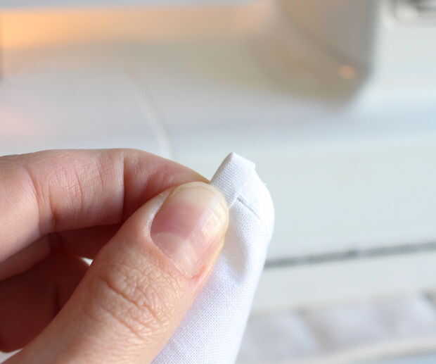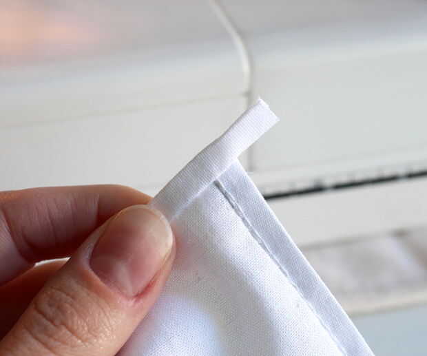 Una vez que usted voltea el atascamiento coserlo la segunda vez, doblar el extremo de la cinta sobre sí misma y de esa manera la puntada. Le dará un agradable rincón con ningunos bordes ásperos.