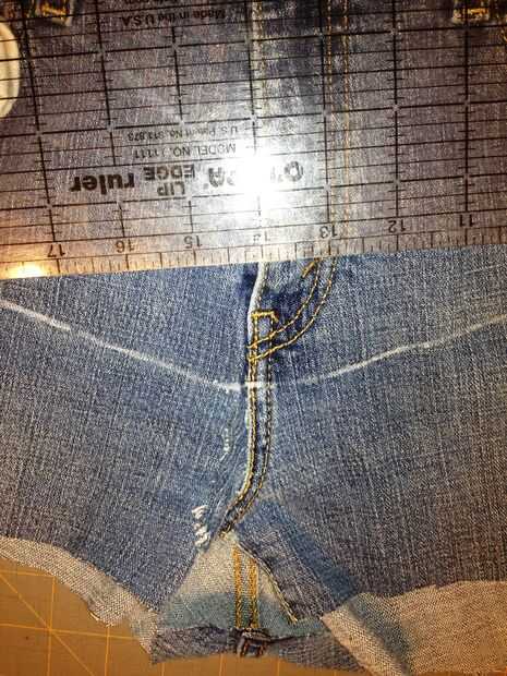Con el borde recto, corte los pantalones con los bolsillos en la parte posterior e inferior de la cremallera en la parte delantera para una guía.