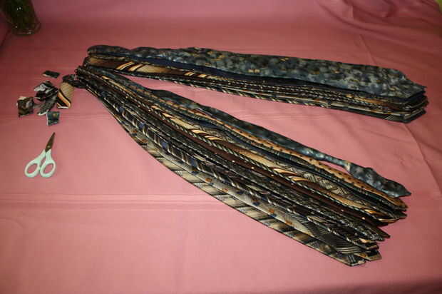 En este punto cogí todos los lazos y recortado a aproximadamente la misma longitud.  Usted podría hacer diferentes longitudes pero queria mantenerlo simple.  Pero ser creativo.