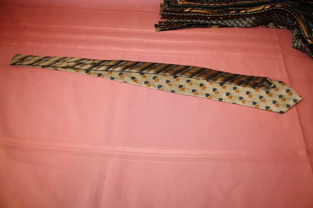 Tomar un frente y una parte posterior de una corbata (utilicé dos diseños diferentes pero se puede hacer cualquier forma que desee) y los ponen frente a frente (uno frente al otro).