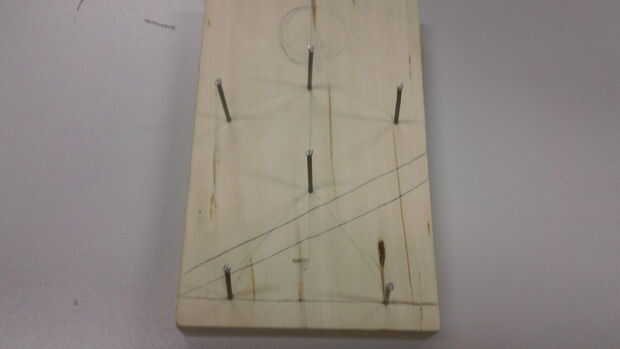 Dibujar un contorno áspero de la madera, esto creará una línea guía para donde van las uñas. Una vez que has dibujado hacia fuera de la figura de martillo un clavo en cada uno de los 6 lugares: