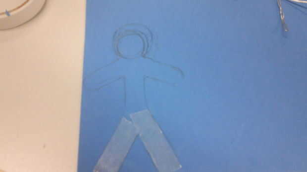 Para este paso necesita 2 de las mismas piezas color de espuma de artesanía. Primero poner el marco de alambre en una de las esquinas de la primera página, dejando el marco de un par de milímetros de lado. Marque muy ligeramente, alrededor de la estructura dejando una media pulgada en cada lado. Cuando el dibujo es el grosor que desee, aplicar cinta de doble cara para cada parte del dibujo, no te preocupes va como una vez que la forma se corta la cinta no se ve. El marco en la parte superior la cinta Asegúrese de que el cable no es tocar los lados y que hay es una distancia igual entre el dibujo y el cable. Pegar los extremos juntos para obtener la cabeza en el lugar-me parece que la cabeza puede ser la parte más delicada así que tómate tu tiempo al colocar la cabeza.