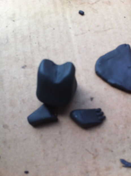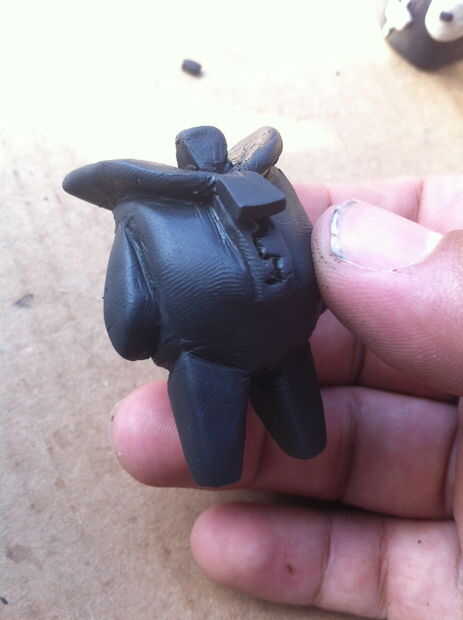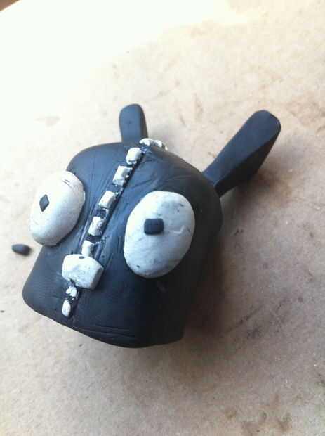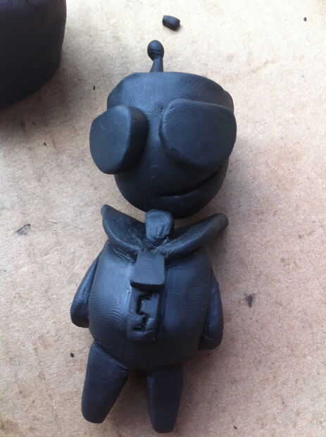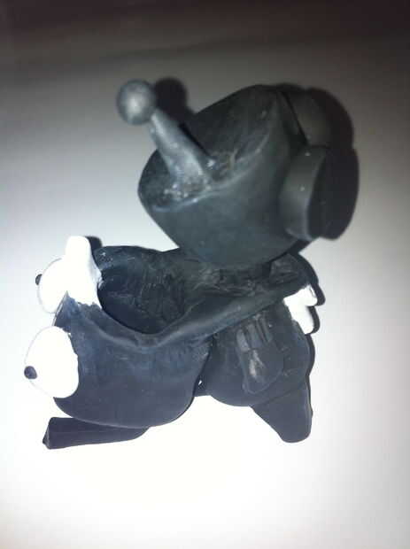 una cosa que supongo que falta en las fotos... para el cuello... y las piernas... utilizar un pequeño trozo de palillo de dientes para fortalecer las piezas... el cuello y la antena es necesitada ya que es muy flaca y sculpey solo agrietaría n rotura fácil... cuidado con los oídos también... que sean gruesos