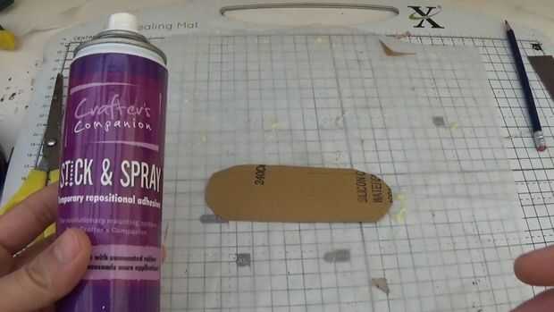 Corte una forma áspera y pegarlo a la parte superior del tablero con un adhesivo de su elección. He utilizado un adhesivo aerosol simple que parecen aguantar muy bien!