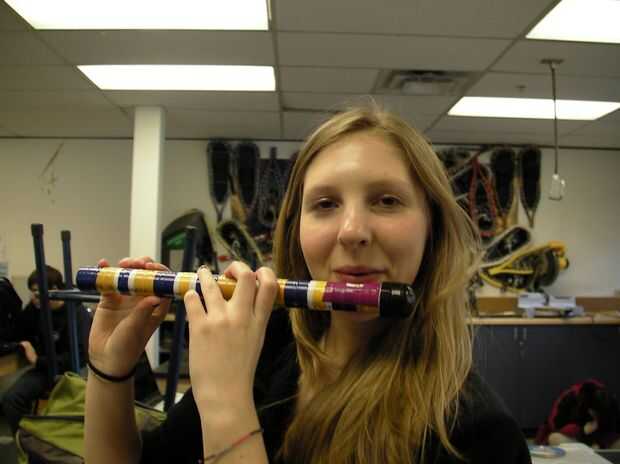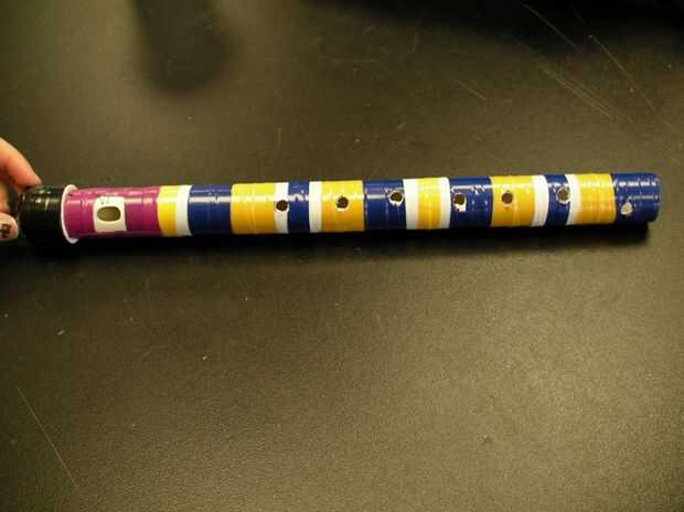 Para el paso final, usted puede elegir decorar tu flauta! Puede envolver la flauta en cinta eléctrica, color con sharpies o subir con diversión creativa forma de decorar la flauta. Recuerde cuando usted son decorándola, no cubrir alguno de los agujeros o el extremo de la flauta! Hemos elegido decorar nuestra flauta con nuestra escuela colores, "oro" y el azul.