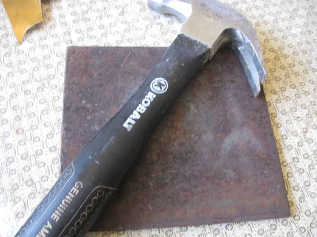 -Martillo y llamativa superficie: tengo el martillo en Lowe, y la superficie llamativa es una broca de 3/16 placa metálica