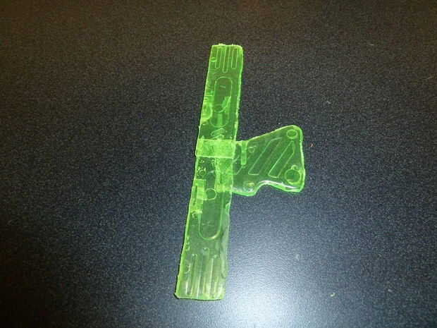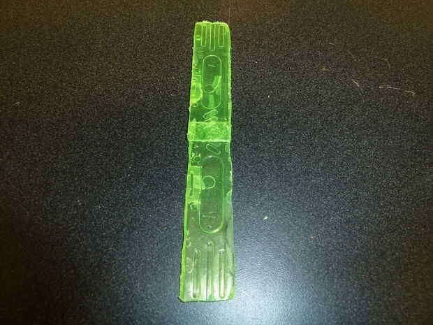 Ahora vas a armar el tallo. En primer lugar, tomar las dos piezas verdes y encolarlos. Después, tome su hoja y pégalo a medio camino hacia abajo el tallo.