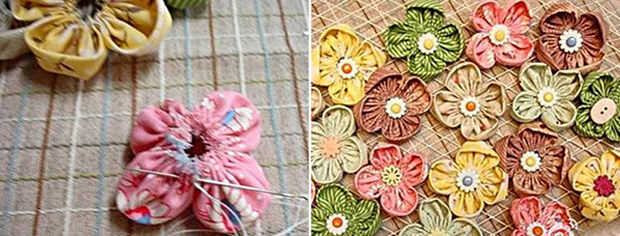 Coser los pétalos por coser dos separadas adyacentes pequeños pétalos. Cortar a una tela circular con el borde de la forma del diente; Asegúrese de que su tamaño puede cubrir el orificio del pétalo. Añadir una gota en el centro de la pequeña tela con pegamento. Coser a la tela pequeñas cuentas para el pétalo. Usted puede hacer más linda tela flores de la misma manera si quieres.