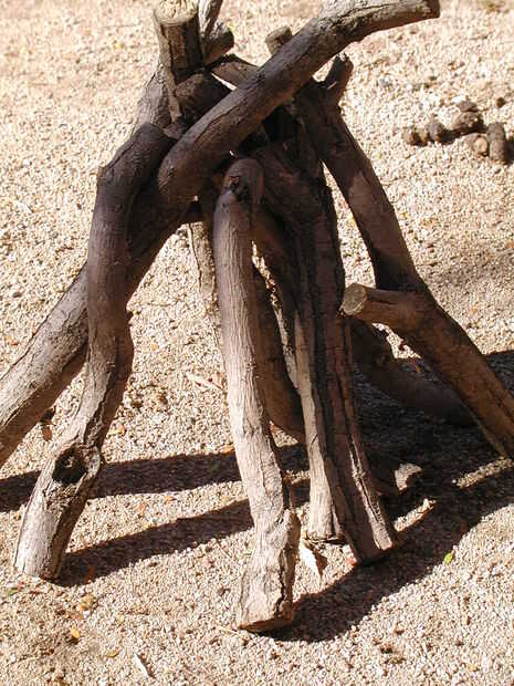 Recoger la madera y empujar la leña en una pila con aire en ella (no comprimido). Tomar los palillos más pequeños y hacer un cono alrededor de la inflamación. Luego tomar 3 palos grandes y hacer un cono de ellos que rodean el cono de otros. Los palos medianos contra el cono grande para hacer un tipi de madera de la pila.