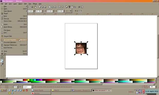A continuación, debe cambiar tamaño del lienzo de Inkscape, especialmente si la imagen que ha importado es muy pequeña. Haga clic en "Archivo" y "Propiedades del documento". Esto abrirá una pequeña ventana que se llama el cuadro de propiedades del documento. Haga clic en el botón que dice "Página de ajuste a la selección". Cierre el cuadro de diálogo Propiedades del documento. Haga clic en "View" y luego en "Zoom" y seleccione "Página". Esto será automáticamente el tamaño de la vista para que ver la imagen directamente en la pantalla.