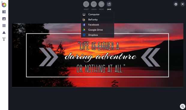 Guarda en tu cuenta de BeFunky o en su ordenador, Facebook, Dropbox o Google Drive y mostrar las mercancías en casi todo el mundo. Mire usted, diseñando todo de lujo.