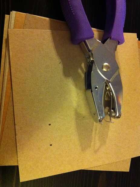 punzón 2 pequeños agujeros en una sola de las piezas base perforar los agujeros de la anchura de las tiras que hiciste y usan el cuchillo para acabar con la ranura