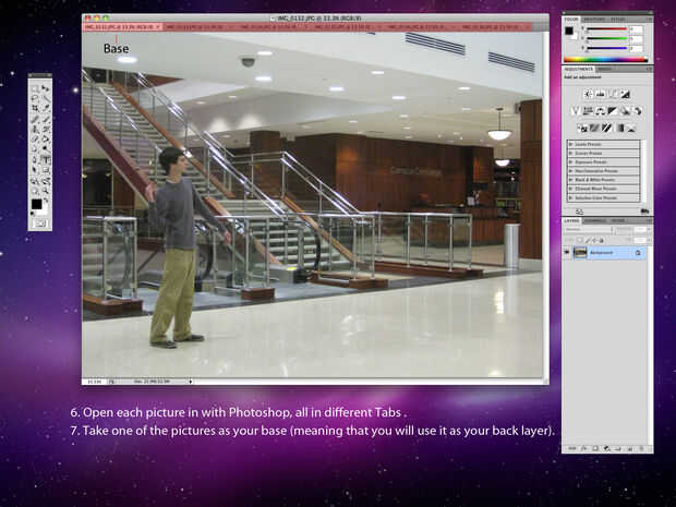 6. abrir cada foto en Photoshop, todos en diferentes pestañas.