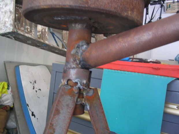 soldar metal de desecho (pequeñas barras) en el tambor de freno para hacer una parrilla
