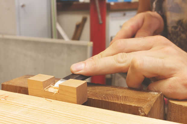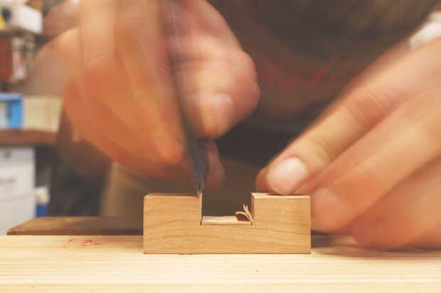 Retirar el exceso poniendo el cincel en la línea de marca y grabar abajo ligeramente con un martillo.