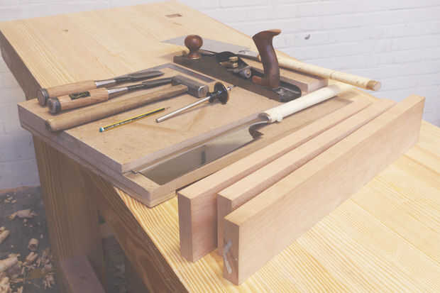 En mi caso 2 sierras japonesas. Ryoba (doble cara) y Dozuki (back-Sierra). Cualquier Serrucho va a hacer. Pero para facilitar el trabajo es bueno tener un dedicado vio para el corte longitudinal las juntas y muy finos los dientes vieron volver hacer el preciso corte transversal Sierra para cortes de longitud y carpintería