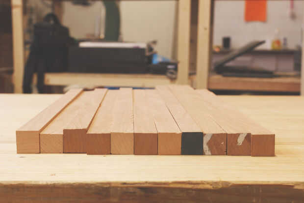 El rompecabezas comienza con la fabricación de listones cuadrados de 1 x 1. Medir todas las tablas, a lo largo de la veta más grande que una unidad, unos mil así tienes un margen de seguridad, para hacer error al cortar al hilo con Sierra de mano (hará que ese error).