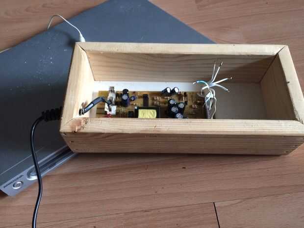 Ser creativos e ingeniosos para montar el PCB en el caso y tener el cable de alimentación cuidadosamente salir. Tenga cuidado para no tornillo en el fondo o las paredes porque usted quiere tener el PCB aislado.