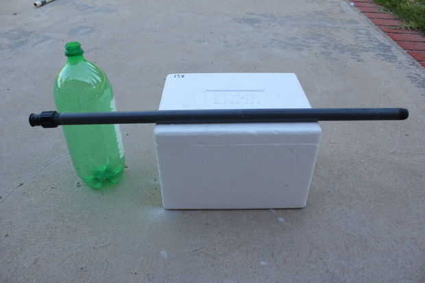 Una longitud de PVC roscado que sobresale unos 6" de la parte superior de la botella