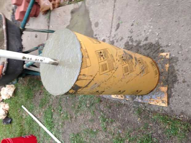 Ahora comenzar a llenar el formulario con el hormigón. Asegúrese de que mantener la PVC centrado. Relleno hasta llegar a la cima y alisar el hormigón aún. Golpee suavemente la parte exterior de la forma de reducir el número de burbujas de aire en la mezcla. Ahora a un lado y esperar a que seque.