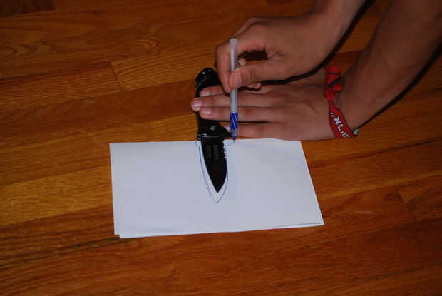 Trazar la forma de la hoja de la navaja/herramienta en un pedazo de papel. Seguimiento de lo nuevo no solapan el primer trazo.