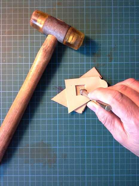 Conseguir una superficie sólida, como un bloque de granito y poner el cuero en él. Inicio sellado o herramientas. No use un martillo de metal en sus herramientas, o se estropean.