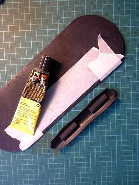 Para la costura final utilicé un pequeño bloque de corcho (algunas capas pegadas) para apoyar la piel para utilizar el punzón y lo de la puntada. A veces usar capas de corcho para hacer una forma de moldear el cuero. Me resulta más fácil trabajar con respecto a la madera.