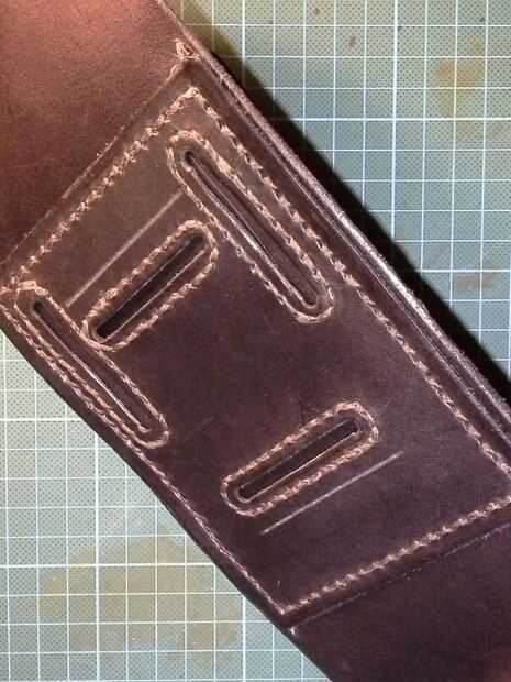 Fijar la subsistencia del cinturón en la parte posterior y coser también. Que tenga que empujar el punzón a través de un ángulo que no se dañe las piezas laterales. Poco complicado pero funciona. Esto es un lento parte del proceso, pensado que sería peor.