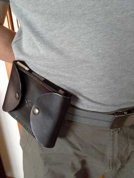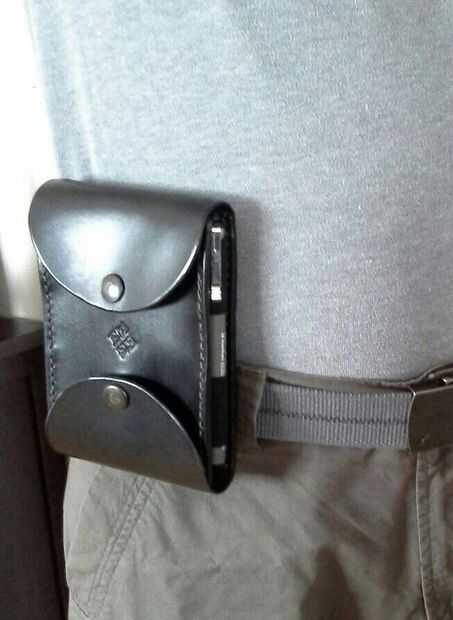 El caso tiene una notebook, dos plumas y puede ser llevado a izquierda y derecha y en baja o alta moda (y en mi humilde opinión se ve bien también).
