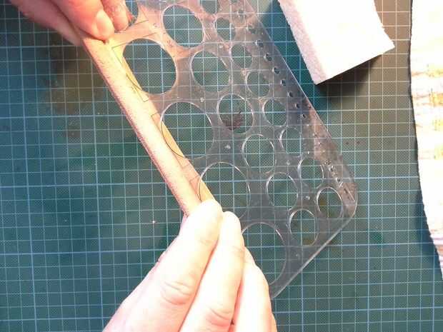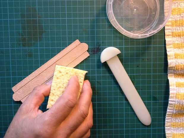 Humedezca las líneas plegables. No te preocupes, la piel es más oscura debido al agua.