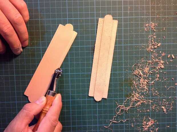 Biselar el borde que va en el interior de la forma de U que formarán más adelante. Esto no es obligatorio pero contribuye a la calidad del caso terminado.