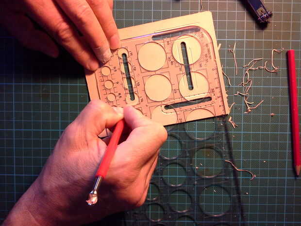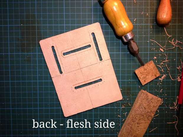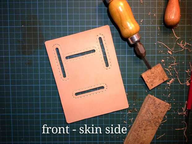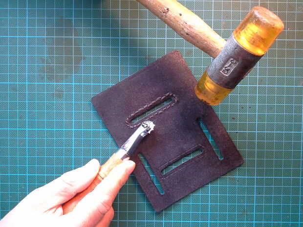 Utilice la rueda de costura para marcar los agujeros de costuras y golpear con la lezna de costura.