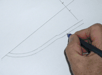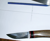 Luego colocar el cuchillo con la punta y manejar sentado en sus marcas. Luego traza alrededor del borde con un lápiz y añadir un metro del centro al contorno.
