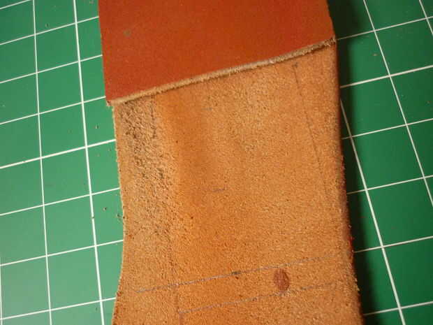 -Para un lazo de cinta, corte un pedazo de cuero 7-8cm de alto por 2,5 cm menos que el ancho de la plantilla