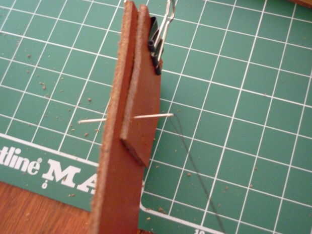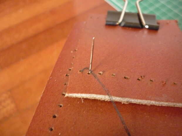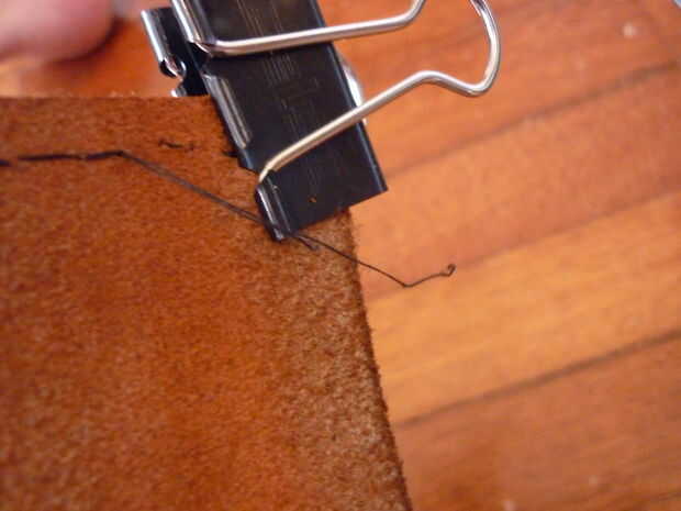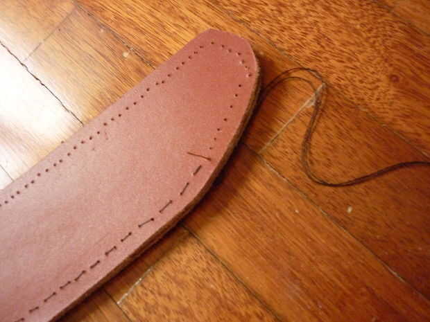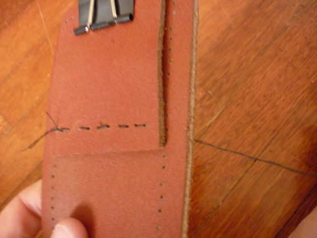 -Costura en el lazo de correa en primer lugar, con el clásico sobre-debajo de la puntada