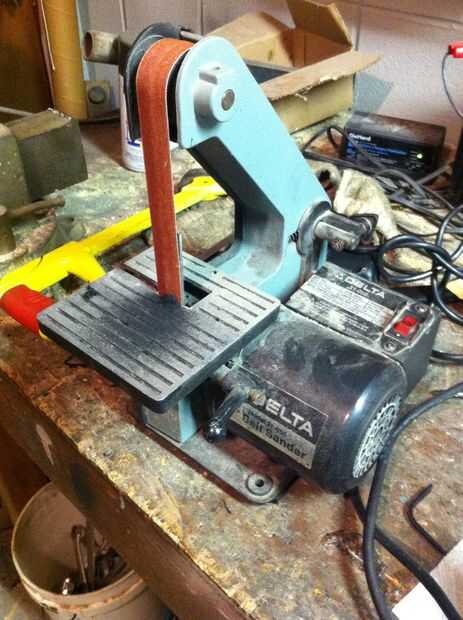 Entonces se forma con una esmeriladora de banco y usted puede cortar las piezas grandes con una sierra, luego puede Agregar un bisel con una lijadora de banda.