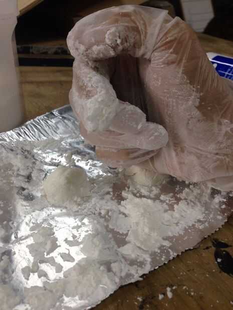 En este paso le damos forma, antes de esto recomiendo hacer bollitos o bolitas y majarlo con la mano con el puño, asi esta va cogiendo consistencia.