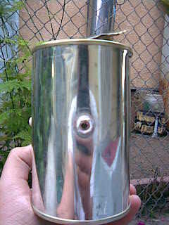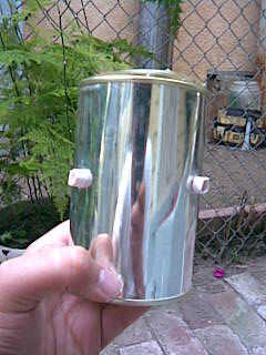 Pegar las dos tapas de los agujeros en el lado de la lata, el otro se utilizará más adelante.