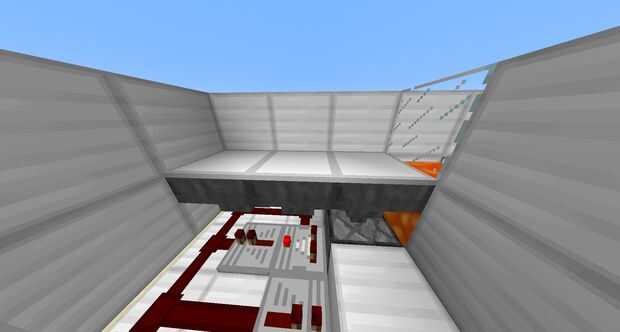 En la capa 4 necesita para poner un bloque de cristal encima de la lava, otro vaso bloque frente y luego colocar alfombras en las tolvas. Luego puede llenar todos los espacios restantes con sus bloques de construcción.