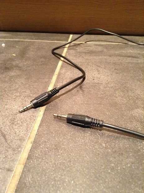 Una toma de auriculares de macho a macho thingy... Yo tenía por ahí una de un proyecto de amplificador.