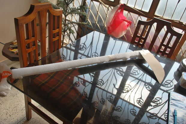 Cortar una pieza de 3 ft de la espiga de espuma... Si el tuyo fue uno corto como el mío... obtener 2 de ellos y unirlos juntos fuertemente con pegamento y cinta...