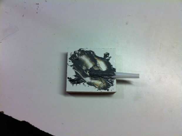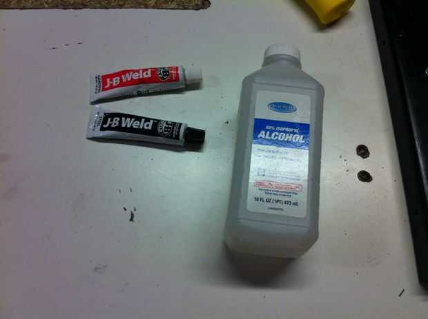 PRIMERO lijar la pintura de su metal y utilizar alcohol de frotamiento para deshacerse de cualquier aceite y suciedad. Mezcle su JB Weld en una pieza de madera o cartón exprimiendo a partes iguales de resina y el endurecedor. Mezcla para como 1 minuto, hasta que un poco de color gris aparece y aplica su JB Weld a la parte metálica.