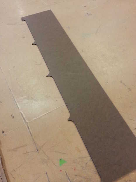 Cuando esté listo, utilice una impresora láser para cortar las formas en un pedazo de masonite o tablero duro. Pude encontrar una pieza lo suficientemente grande en el depósito de chatarra al lado de los láseres en TechShop. Mide aproximadamente 4 "x 24".