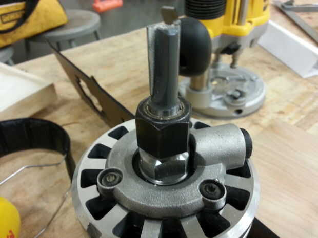 Una vez más, asegúrese de que su router está desenchufado. Inserte la broca deseada. Usé 1/2" broca de corte recto. Un poco más pequeño le dará más pequeñas dentro de las esquinas de radio.