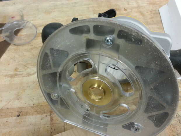 El truco aquí es utilizar un buje de router que permite que su router seguir un borde. Yo tengo la mía de Rockler. Puerto de carga también tiene un paquete 7 disponible por $15.