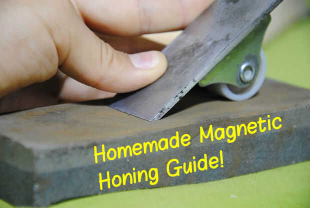 Una manera fácil para fijar un plano de mano, o un cincel al afilar, es usando una herramienta especial, pero simple, que se denomina Guía de afilar con piedra. Desafortunadamente, estos pueden ser bastante caros, y no quiero esperar un mes entero para uno llegar desde China (de eBay).